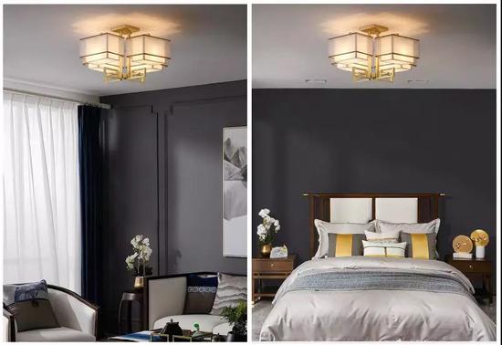 没想到新中式风格的黄铜灯,也可以这么好看!回字形造型,特别有味道。