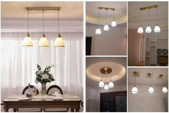 推荐大家买这种三头的餐厅吊灯,长度可以调整成平行的,或者斜字型。